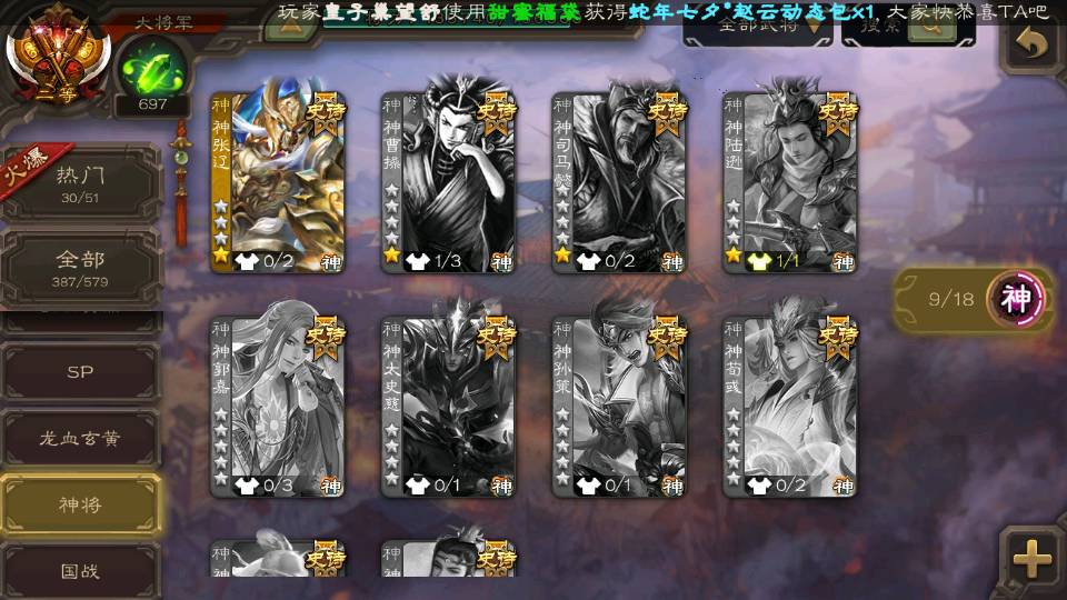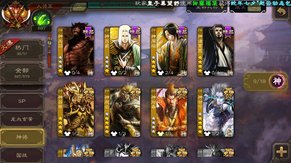 (神将):神甘宁,神赵云,神吕布,神刘备,神张辽