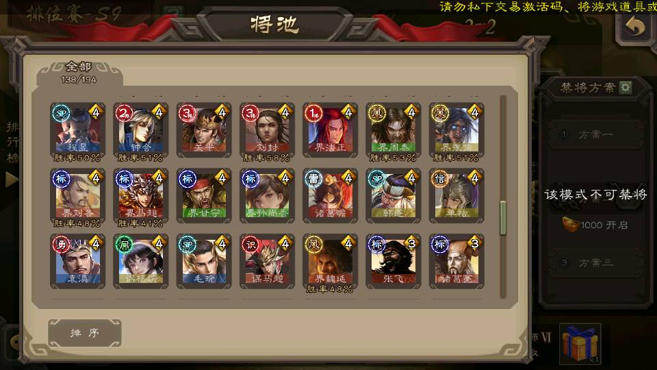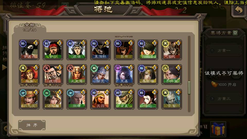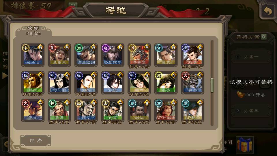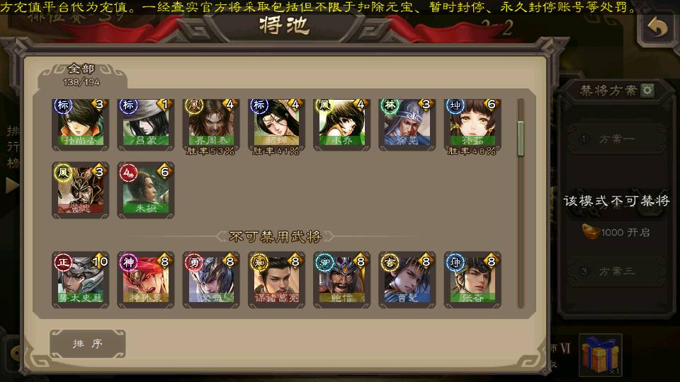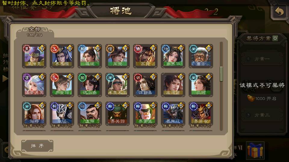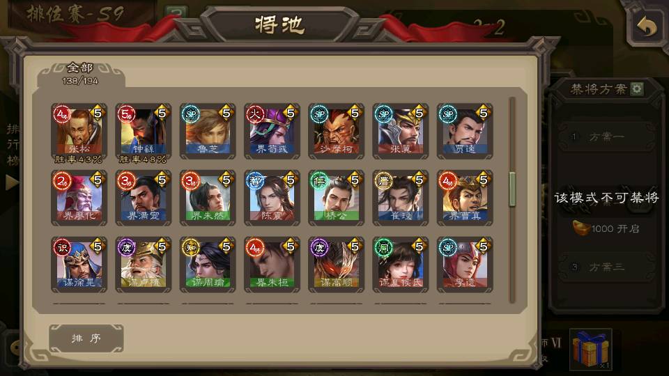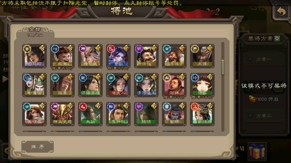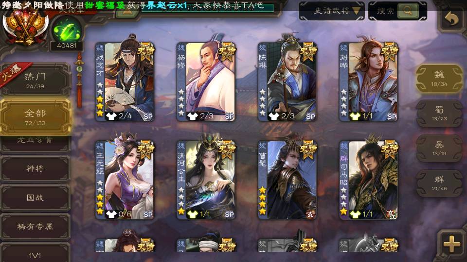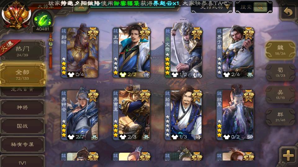 (群雄):刘焉,杜预,祢衡,界左慈,界沮授,麴义,许攸,十常侍,司马昭,张让,界李儒,苏飞,星董卓,裴秀,卑弥呼,士燮,郑玄,星黄忠,左慈,沮授,兀突骨