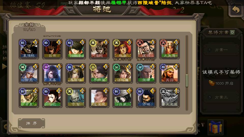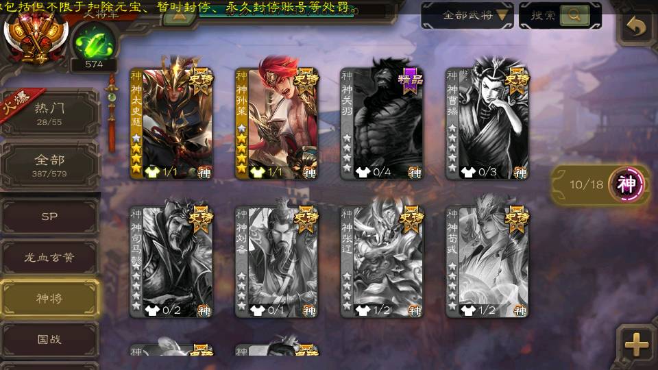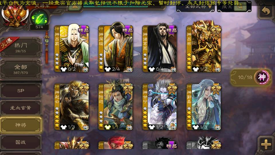(神将):神郭嘉,神甘宁,神孙策,神太史慈,神陆逊,神赵云,神吕布
