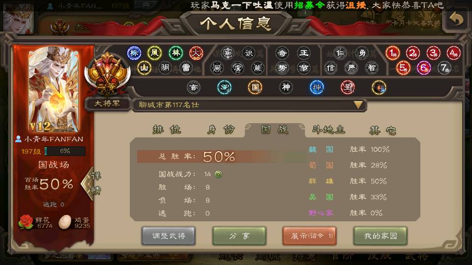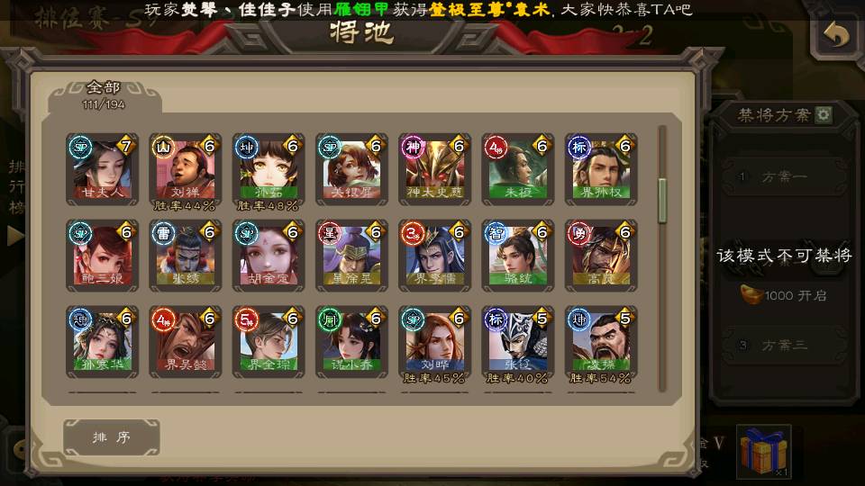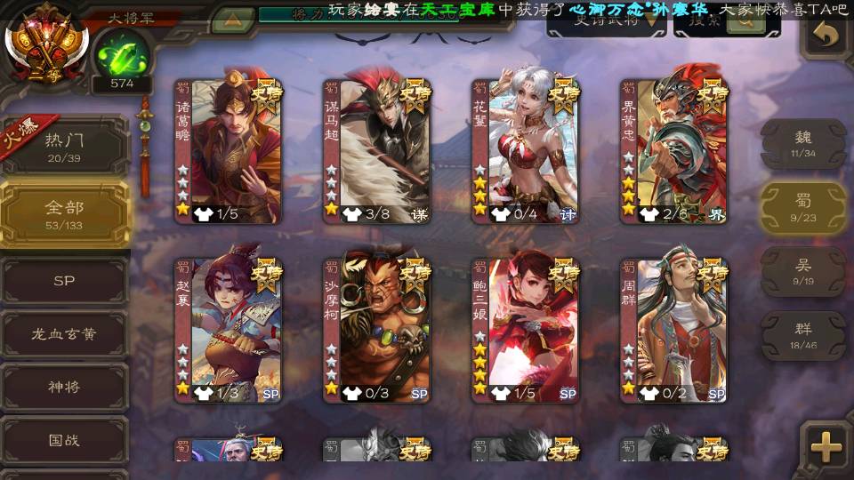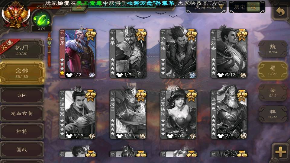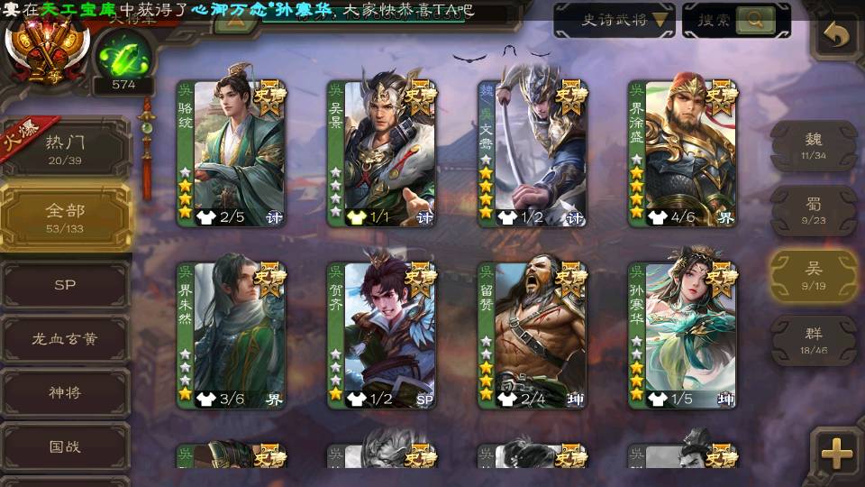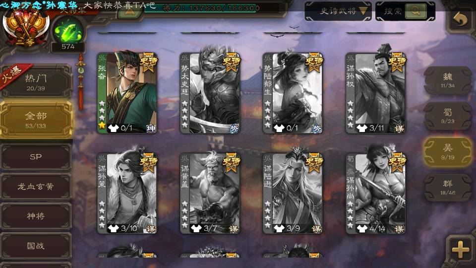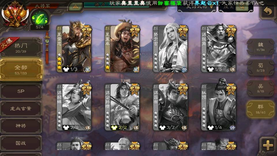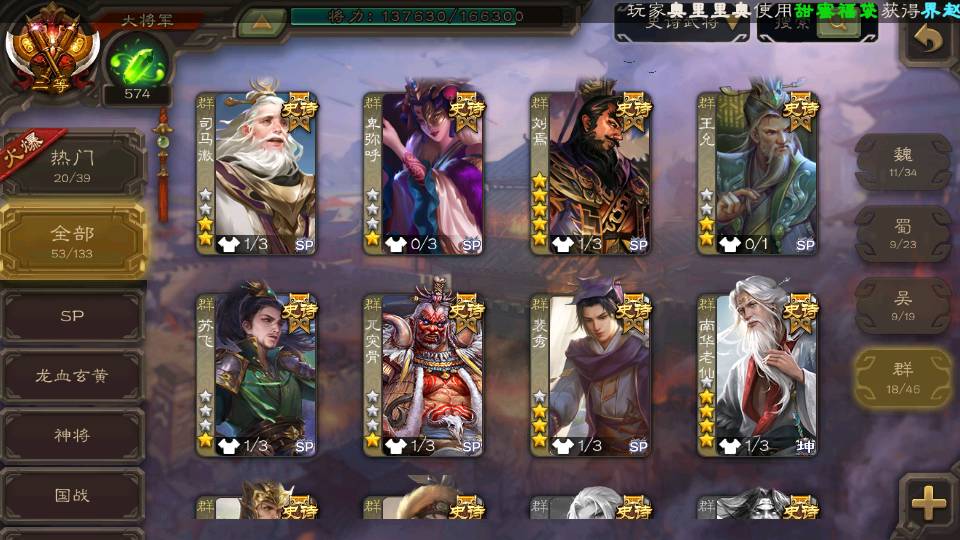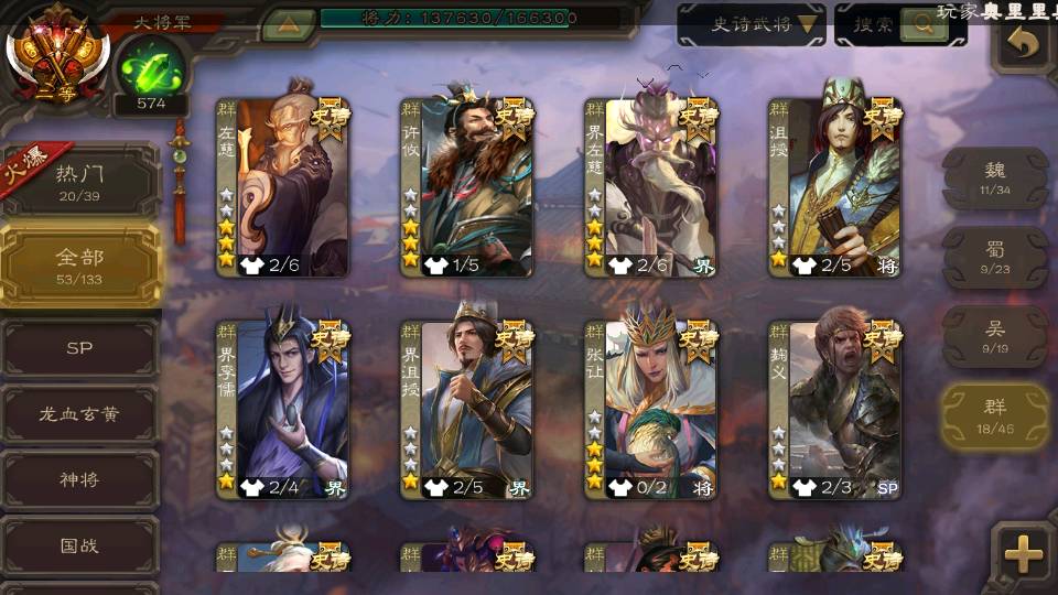 (群雄):刘焉,界左慈,界沮授,南华老仙,麴义,许攸,张让,界李儒,苏飞,星董卓,裴秀,卑弥呼,王允,星黄忠,司马徽,左慈,沮授,兀突骨