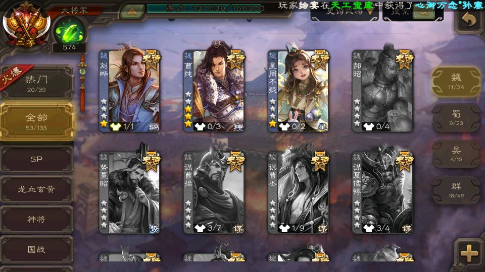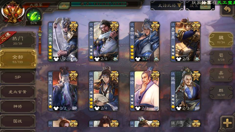 (魏国):文鸯,戏志才,界钟会,界于禁,界曹真,星周不疑,程昱,曹纯,杨修,陈琳,刘晔