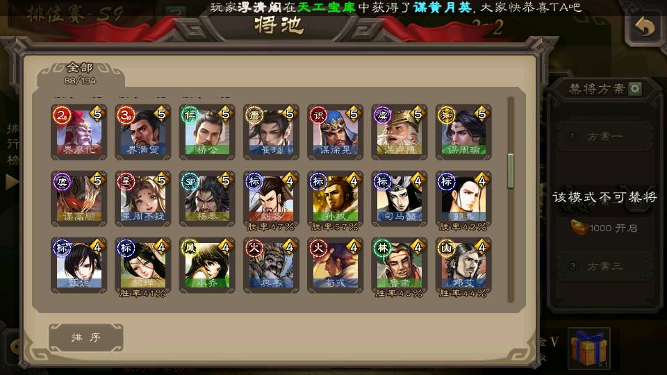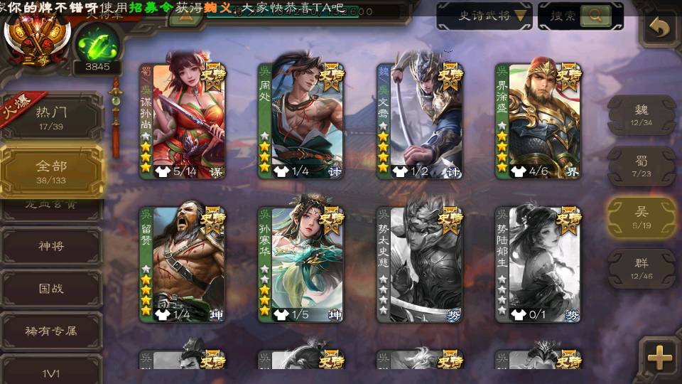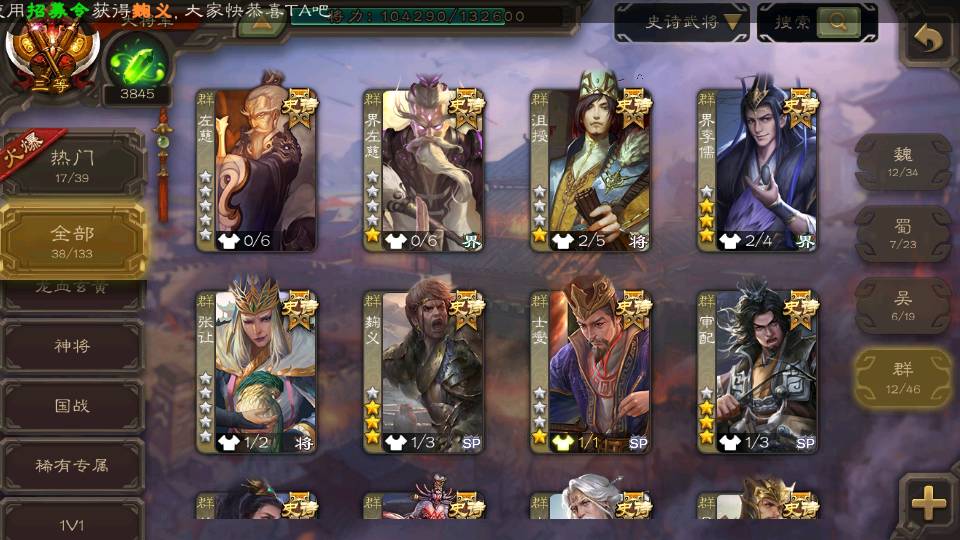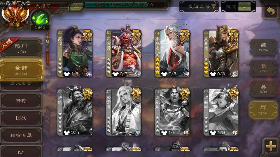 (群雄):界左慈,南华老仙,麴义,张让,界李儒,苏飞,士燮,审配,星黄忠,左慈,沮授,兀突骨