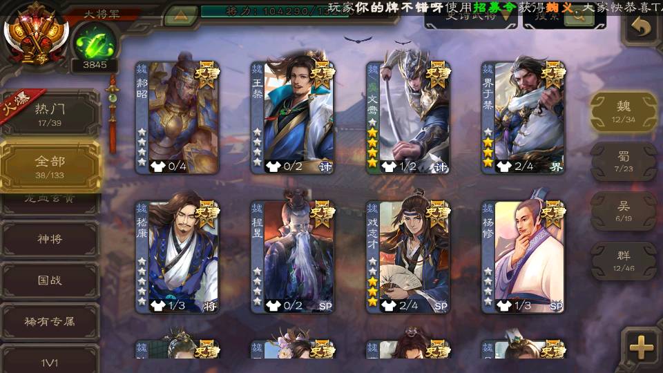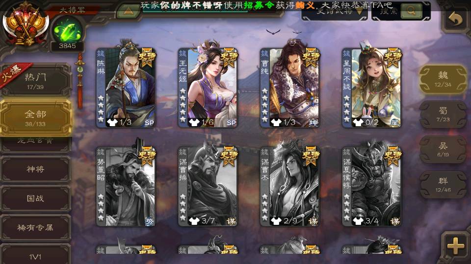 (魏国):文鸯,戏志才,王元姬,界于禁,郝昭,王粲,星周不疑,程昱,曹纯,杨修,陈琳,嵇康