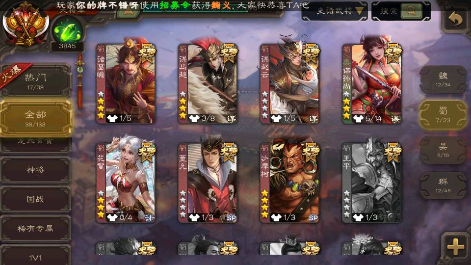 (蜀国):谋孙尚香,诸葛瞻,谋赵云,花鬘,沙摩柯,谋马超,董允