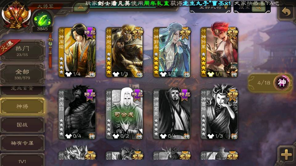 (神将):神郭嘉,神孙策,神赵云