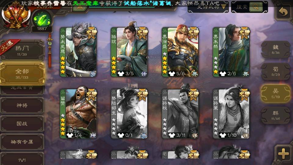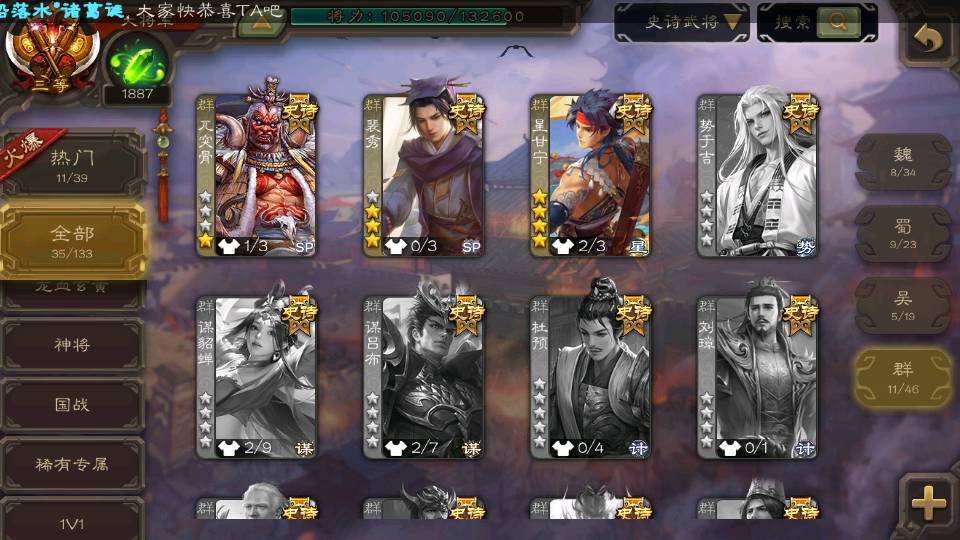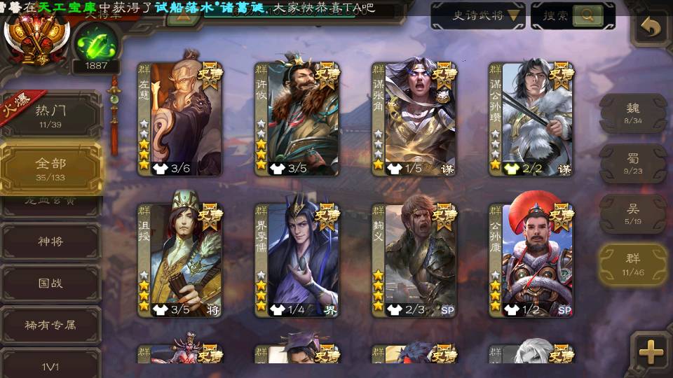 (群雄):麴义,许攸,界李儒,星甘宁,谋公孙瓒,裴秀,谋张角,公孙康,左慈,沮授,兀突骨