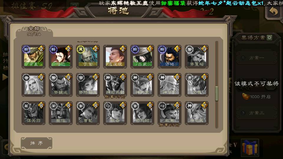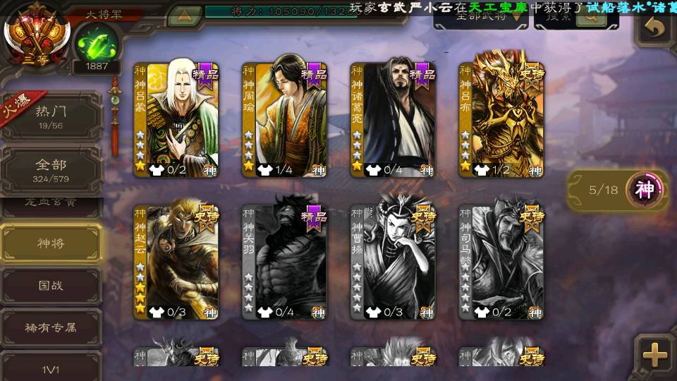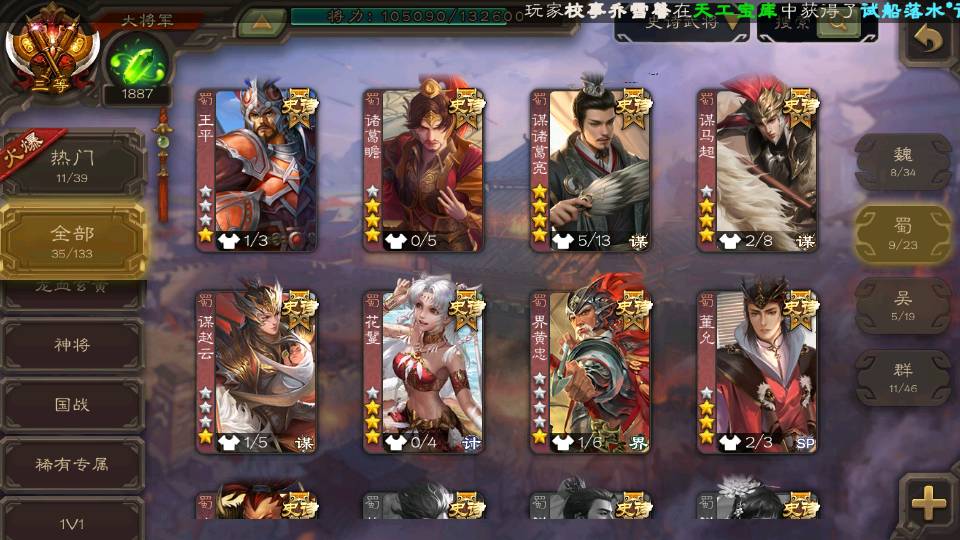 (蜀国):谋诸葛亮,诸葛瞻,界黄忠,谋赵云,花鬘,沙摩柯,谋马超,王平,董允