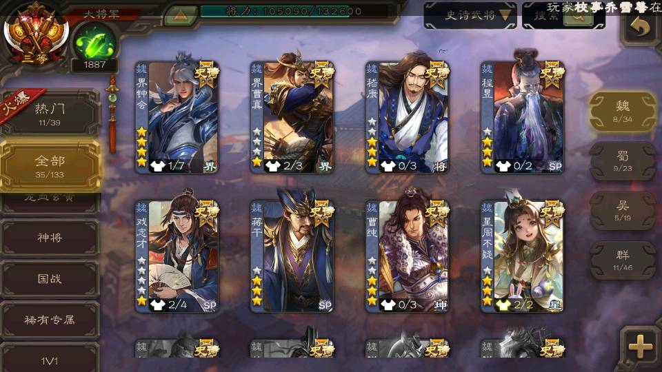 (魏国):戏志才,界钟会,蒋干,界曹真,星周不疑,程昱,曹纯,嵇康