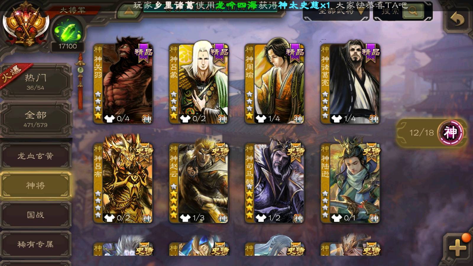 (神将):神荀彧,神郭嘉,神甘宁,神司马懿,神陆逊,神赵云,神吕布,神张辽