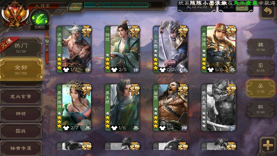 (吴国):界徐盛,留赞,谋黄盖,骆统,界朱然,界步练师