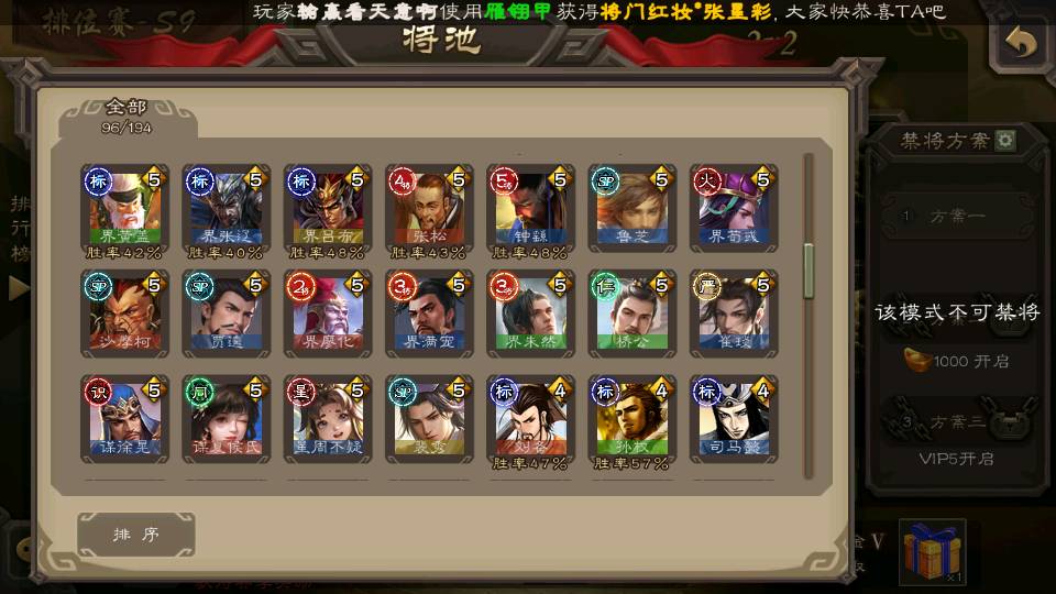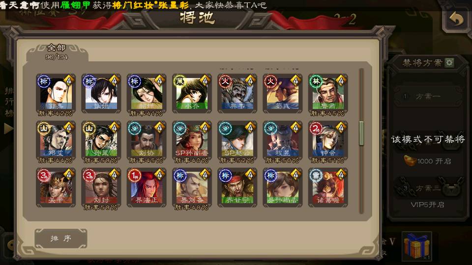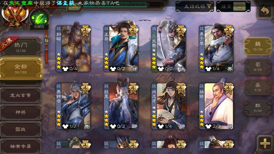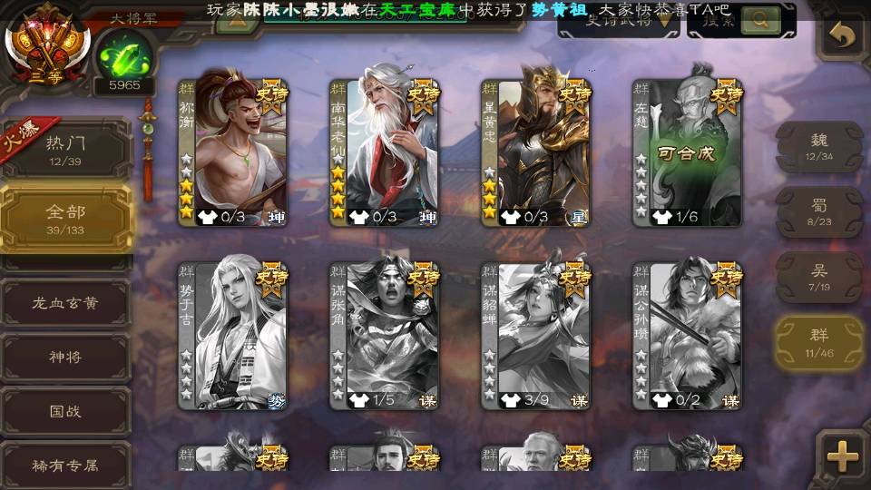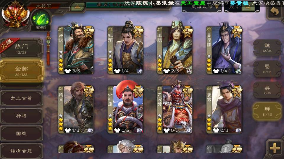 (群雄):杜预,祢衡,南华老仙,麴义,许攸,界李儒,裴秀,公孙康,星黄忠,沮授,兀突骨