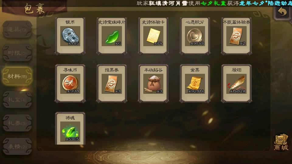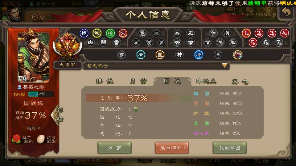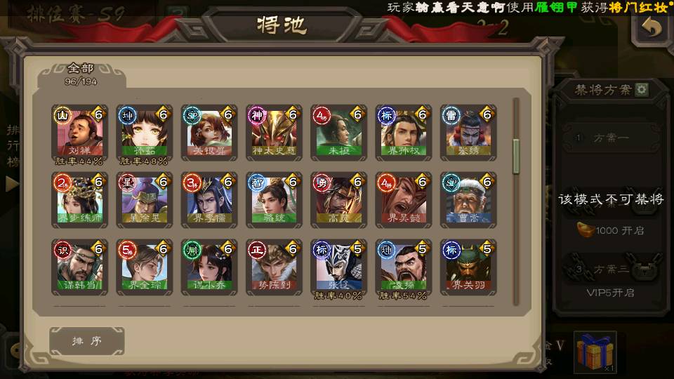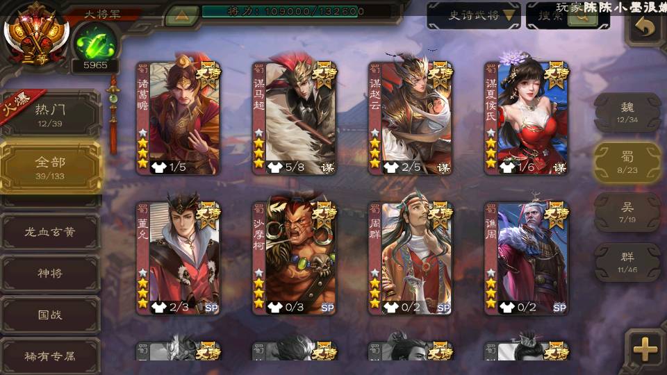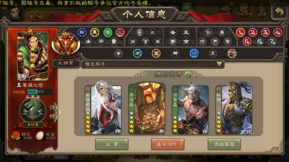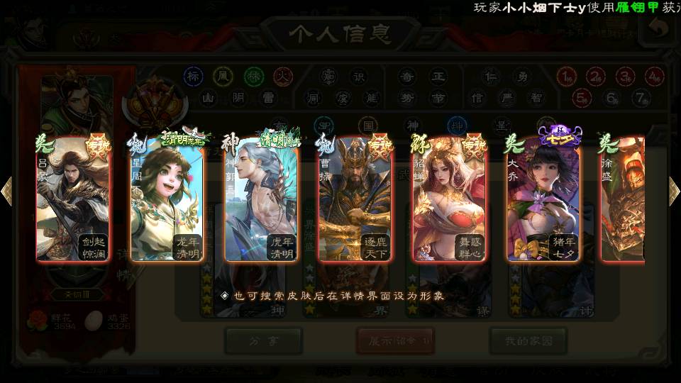 商品编号22702 全部皮肤365,动态皮肤37,全部武将342,排位武将96,国战武将87,史诗武将39,vip:9,心愿积分9.7k,金票9.2w,将魂5.9k