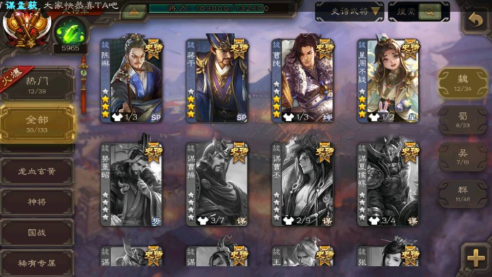 (魏国):文鸯,戏志才,界钟会,界于禁,蒋干,郝昭,王粲,星周不疑,程昱,曹纯,杨修,陈琳
