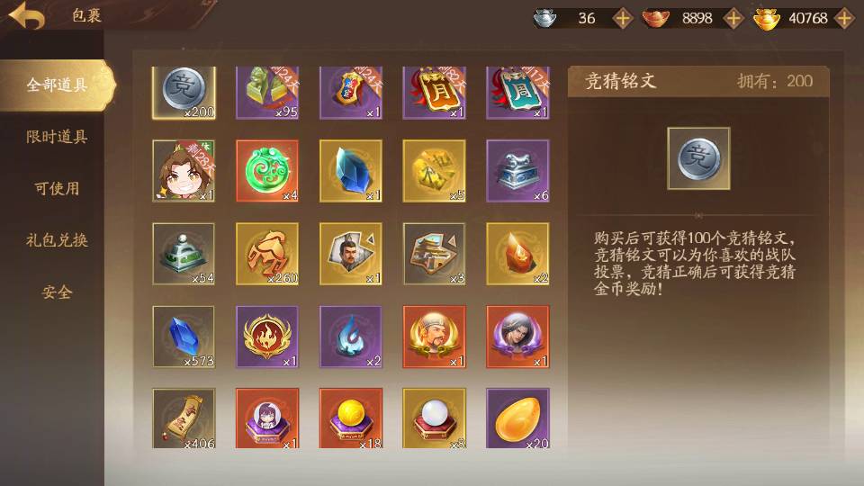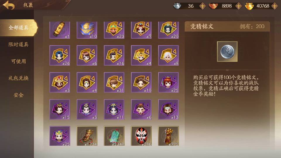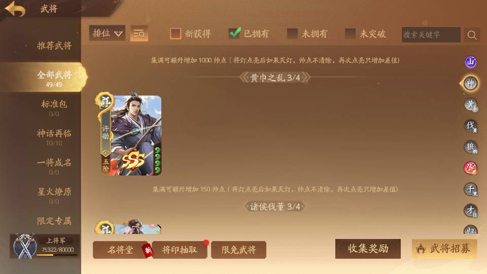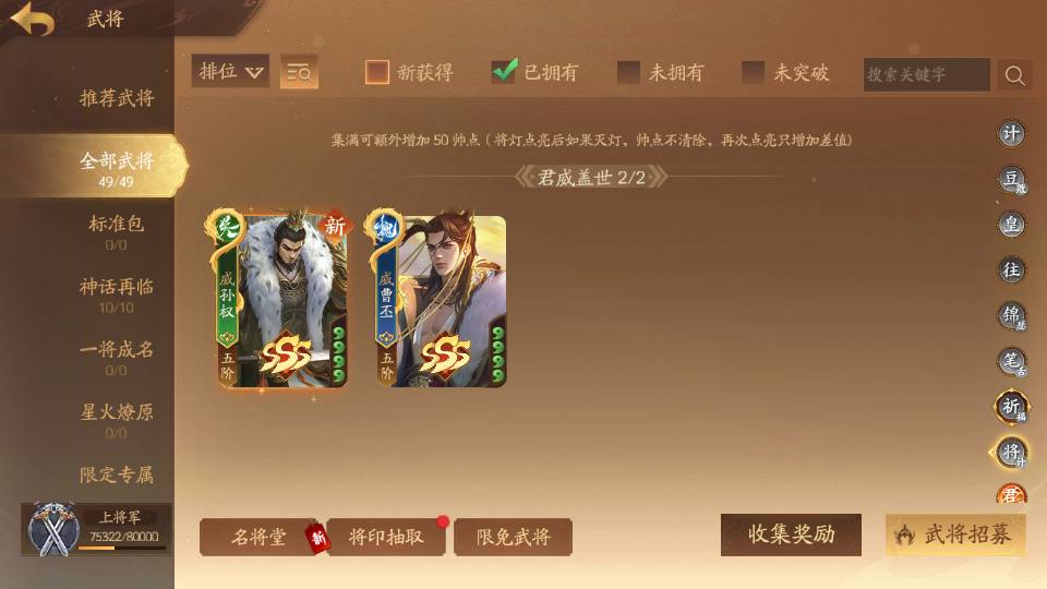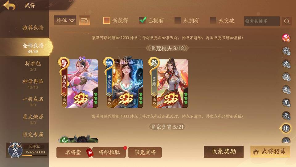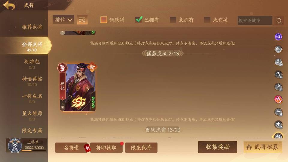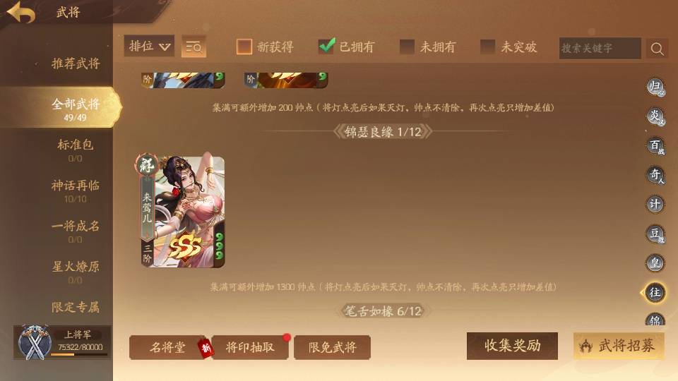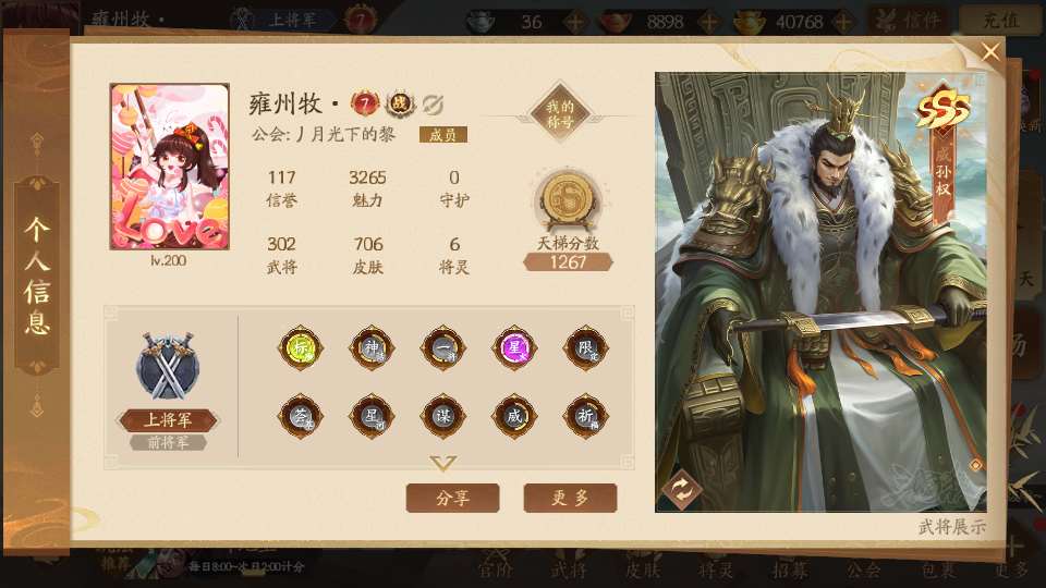 商品编号Dsa174 武将:王荣,许劭,董承,曹婴(限动),来莺儿,张琪瑛,蒲元,管辂,葛玄,周宣(限动),骆统 包裹:传世玉4,V7会员,总武将302,总皮肤1058,总国战97,帅点7.5w