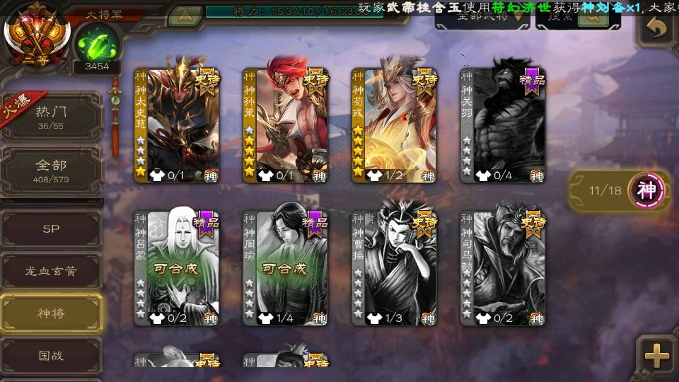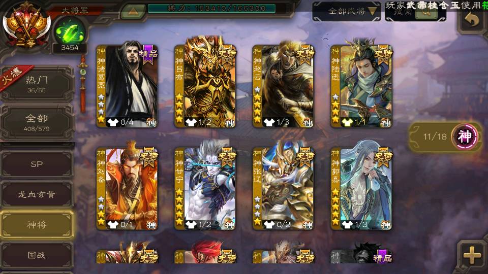 (神将):神荀彧,神郭嘉,神甘宁,神孙策,神太史慈,神陆逊,神赵云,神吕布,神刘备,神张辽