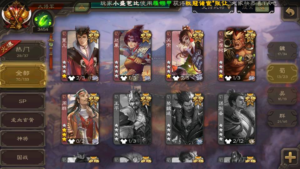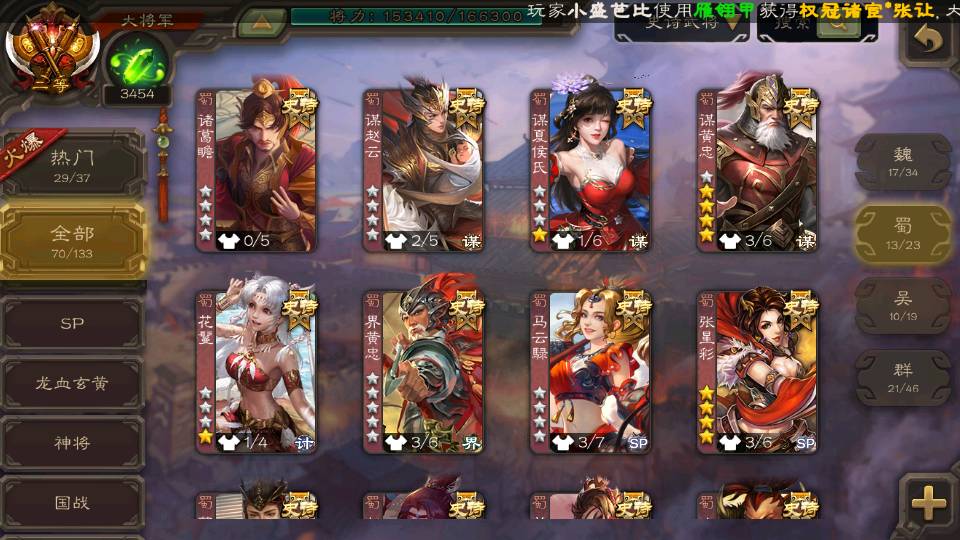 (蜀国):界黄忠,周群,谋黄忠,诸葛瞻,谋赵云,花鬘,沙摩柯,谋夏侯氏,关索,张星彩,马云騄,董允,赵襄